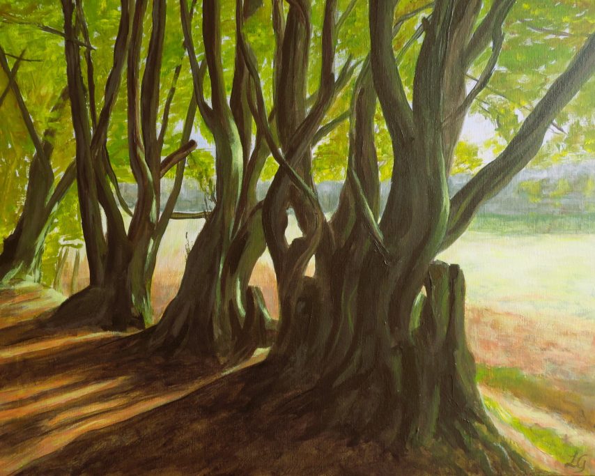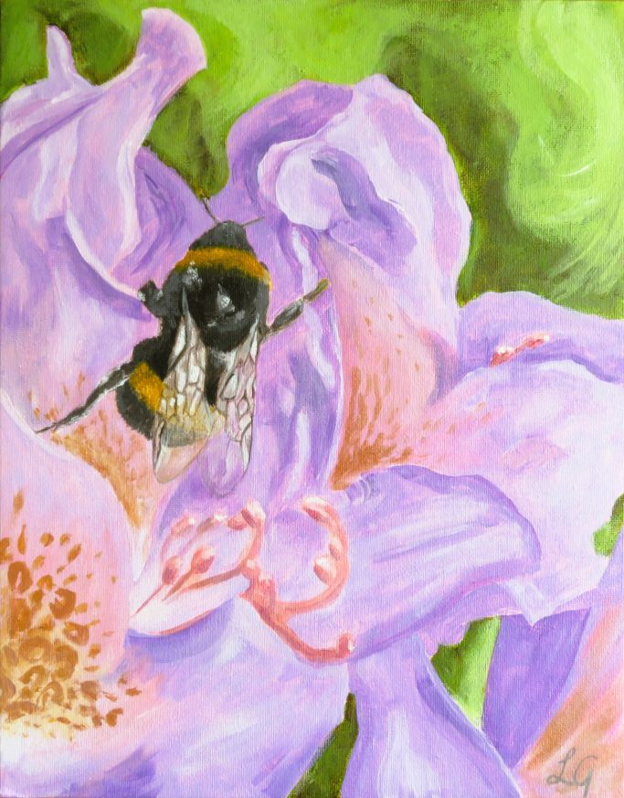 I am a keen photographer and use photos taken whilst out walking as a source of inspiration. I see beauty in most things but am particularly fascinated by trees, birds and insects. I either work in detail to represent the subject as I saw it or in a looser, more abstract manner if I want to convey how it made me feel.